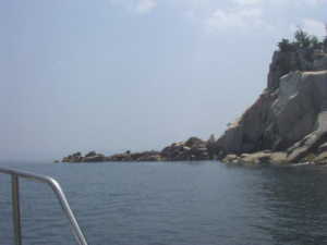 さて、我々を乗せた船は「三つ岩」、「小山」を回り「夫婦ガメ」を通過していよいよ「ヒナダン」に近づきます。途中の磯では4,5名ほどが竿を出しているだけでした。