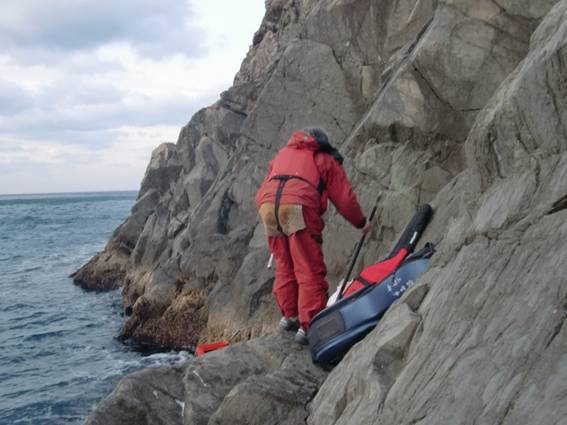 今日も我々は最後まで船に残りましたが、今日はミズバエを越えて寝床とは反対側の西側の磯に行くようです。
