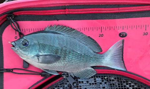 Fさんには30cmほどのカンダイの子供が掛かりました。