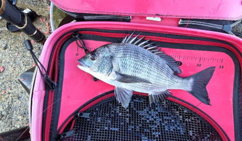 私はグレ26〜29cm7枚で4枚持ちかえり、シマダイ33cm1枚、チヌ33,34cmの2枚。