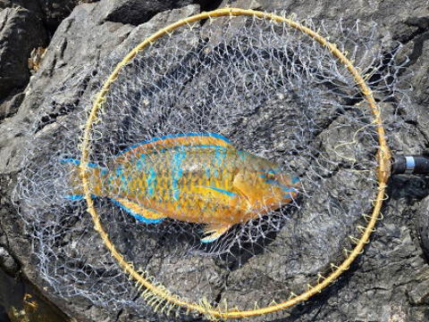 私の今日の釣果はグレ34cm、オオモンハタ30cm、アカハタ28,25cm、キバンドウ40cm(放流)でした。